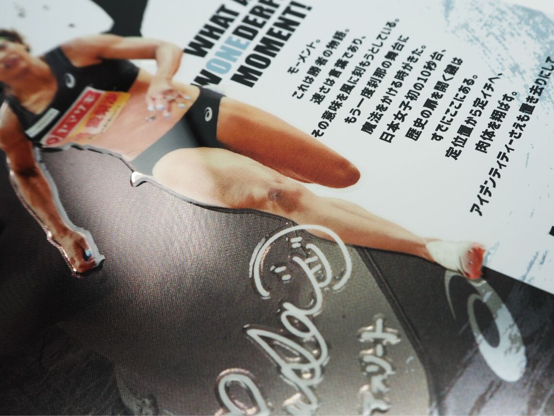 こちらは人物写真への活用例です。写真全体ではなく、強調したい被写体(この場合はアスリートと選手のサイン)のみを盛り上げています。 背景はマットなまま、被写体だけがグロス感を帯びて浮き上がるため、紙面に奥行きが生まれます。