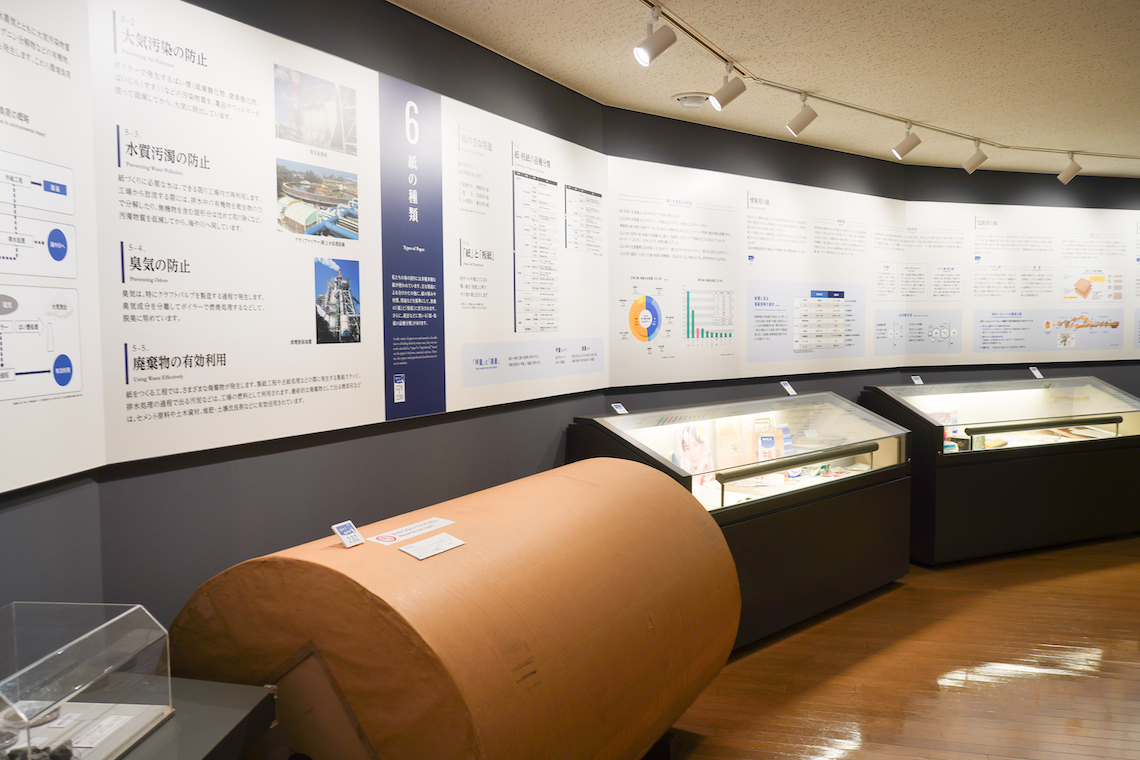 2階の常設展示室「紙と産業」では、明治時代から現代に至るまでの、日本の製紙産業の歩みを学ぶことができます。