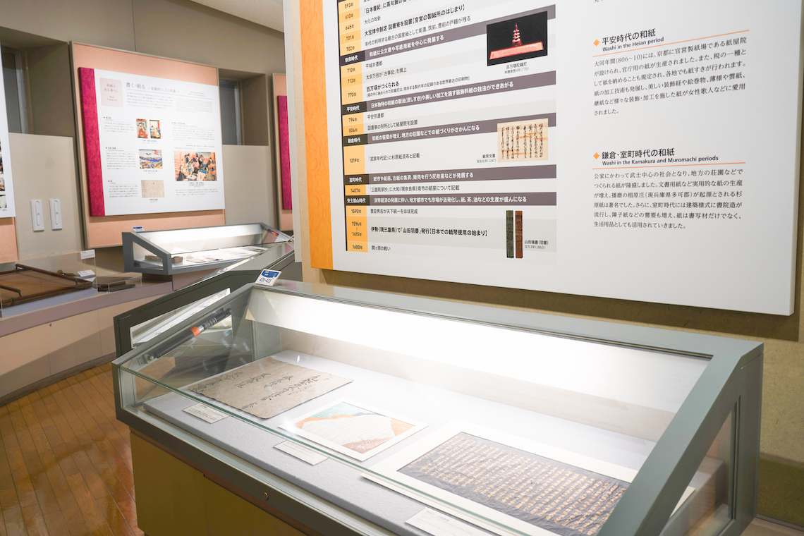 4階へと上がると、雰囲気がガラリと変わり、「和紙と文化」の世界が広がります。