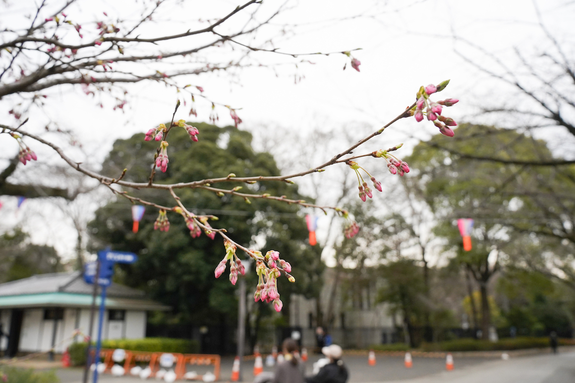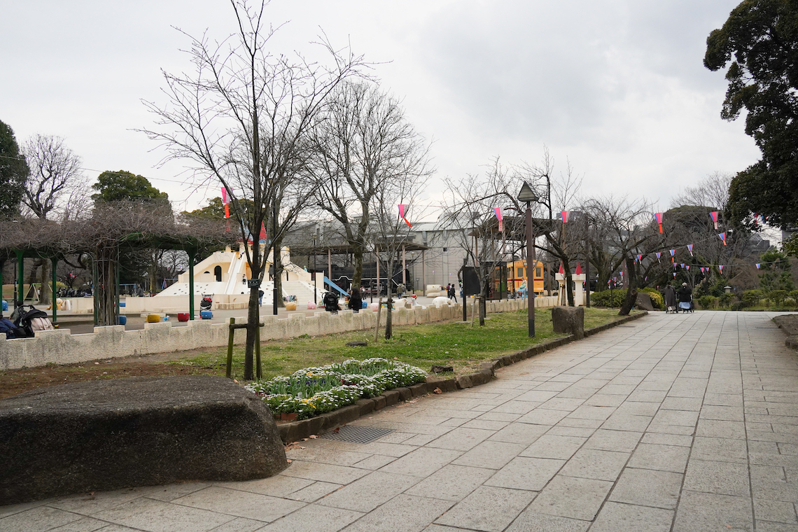 飛鳥山公園内の豊かな自然や四季折々の風景を楽しみながら散策することができます。この時は桜の開花前でしたが、蕾が少し膨らみを見せていました。