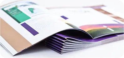 紙以外の素材にもよく使われるシルク印刷ですが、前述した通り紙の印刷にも大きな効果を発揮します。こちらのパンフレットでは、いちごにかけられたミルクの部分にシルクスクリーン印刷を施すことによって、独特な手触りと立体感を出すことができています。
