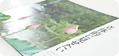 例えばこちらの印刷物は、流れるような曲線が特徴的なデザインですが、シルクスクリーン印刷によってさらにエレガントかつ立体的な表現になっており、デザインセンスが格段にレベルアップされた印象になっています。
