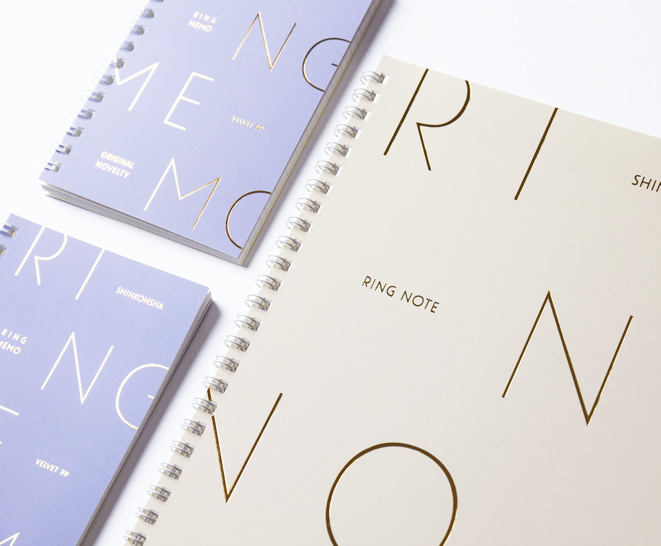 特殊加工・特殊印刷 | 表紙PP:疑似エンボス、特色印刷(白2度刷り) 本体:ダブルリング製本 台紙:箔押し印刷 | 疑似エンボス、型抜き加工、特色印刷(白2度刷り) |