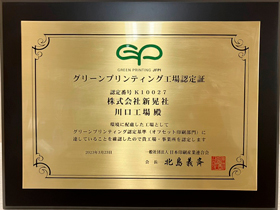 川口工場が「グリーンプリンティング認定工場」として認定されました