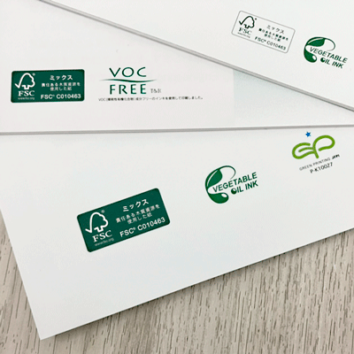 新晃社では、自然環境配慮したインキ・用紙の取り扱いから、FSC®(森林認証)をはじめとする環境配慮した印刷に対応した認証を取得など印刷物に自然環境配慮への活動をPRできるロゴマークつけることができます。お客様のご要望をお伺いして、適切なPR方法をご提案いたします。
