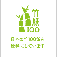 生物多様性の保全や森林・里山保全、国土保全の観点から日本の竹100%を原料とした紙のマークです。